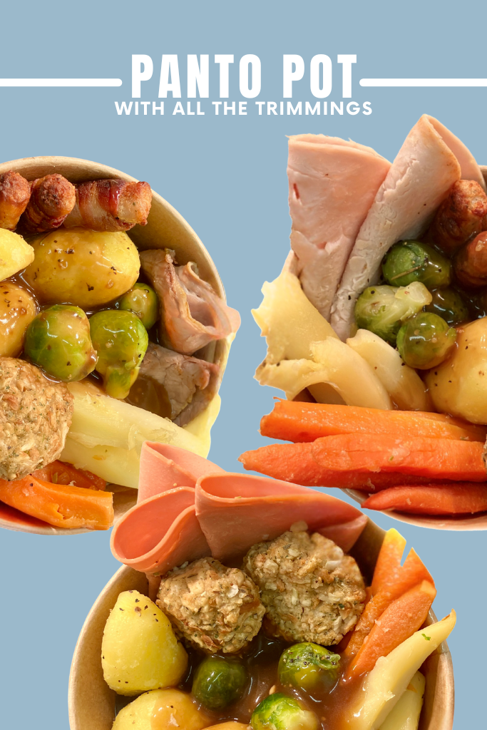 This year, we’re excited to introduce our brand-new Panto Pot: With All the Trimmings – a street-style festive meal designed especially for panto-goers. Served in a cosy grab-and-go pot, it’s the perfect pre-show bite: comforting, delicious, and just the right size to enjoy before curtain-up.